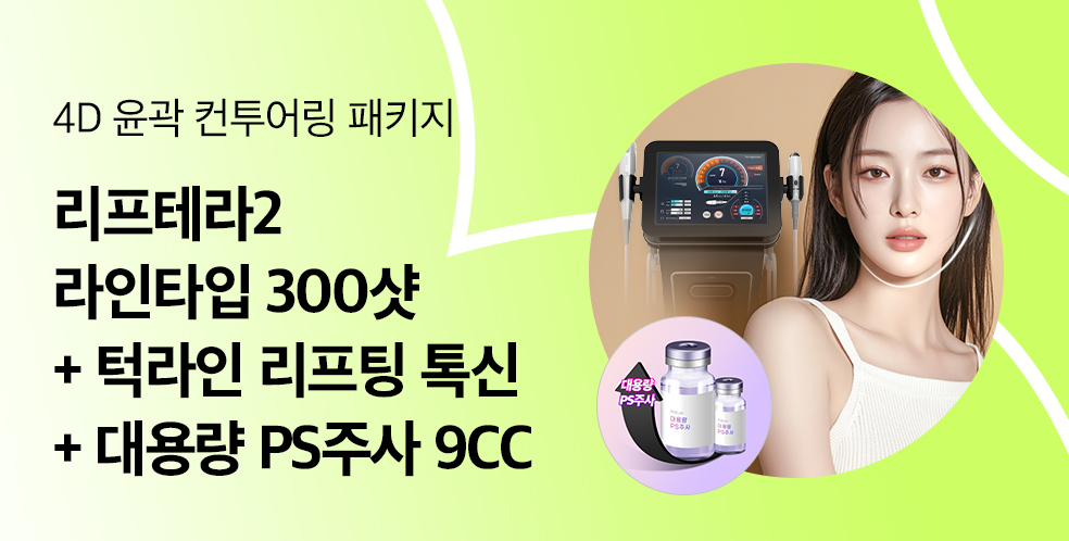 [4D 윤곽 컨투어링 패키지] 리프테라2 라인타입 300샷 + 턱라인 리프팅 톡신 + 대용량 PS주사 9cc 47% 149,000 285,000