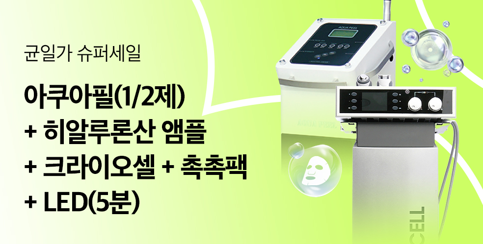 아쿠아필(1/2제) + 히알루론산 앰플 + 크라이오셀 + 촉촉팩 + LED(5분) 44% 39,000 70,000