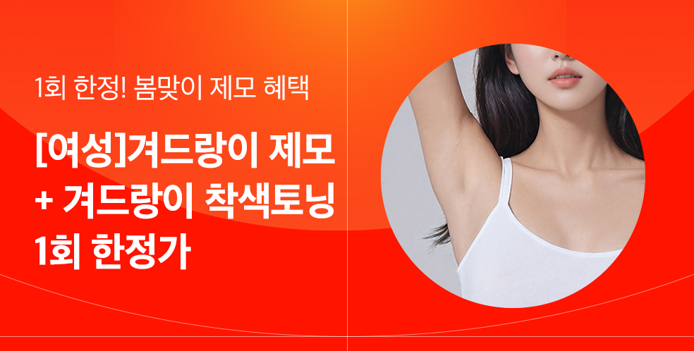 [여성] 겨드랑이 제모 + 겨드랑이 착색토닝 1회 한정가 49% 9,900 19,500